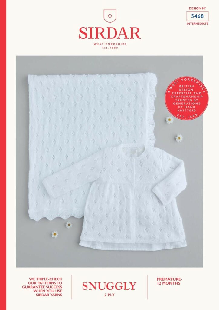 Sirdar pattern 5468 features a Blanket and Matinee Jacket in Snuggly 2ply for Babies to 2 years.